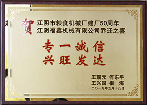 江陰福鑫機械有限公司前身為全民所有制企業——江陰市糧食機械廠。該廠始建于1969年,至今已有 50年歷史。