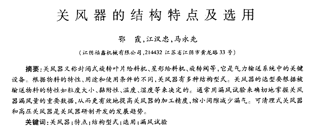 China Oil and Fat in 2006 "Structural Characteristics and Selection of Air Shutoff"